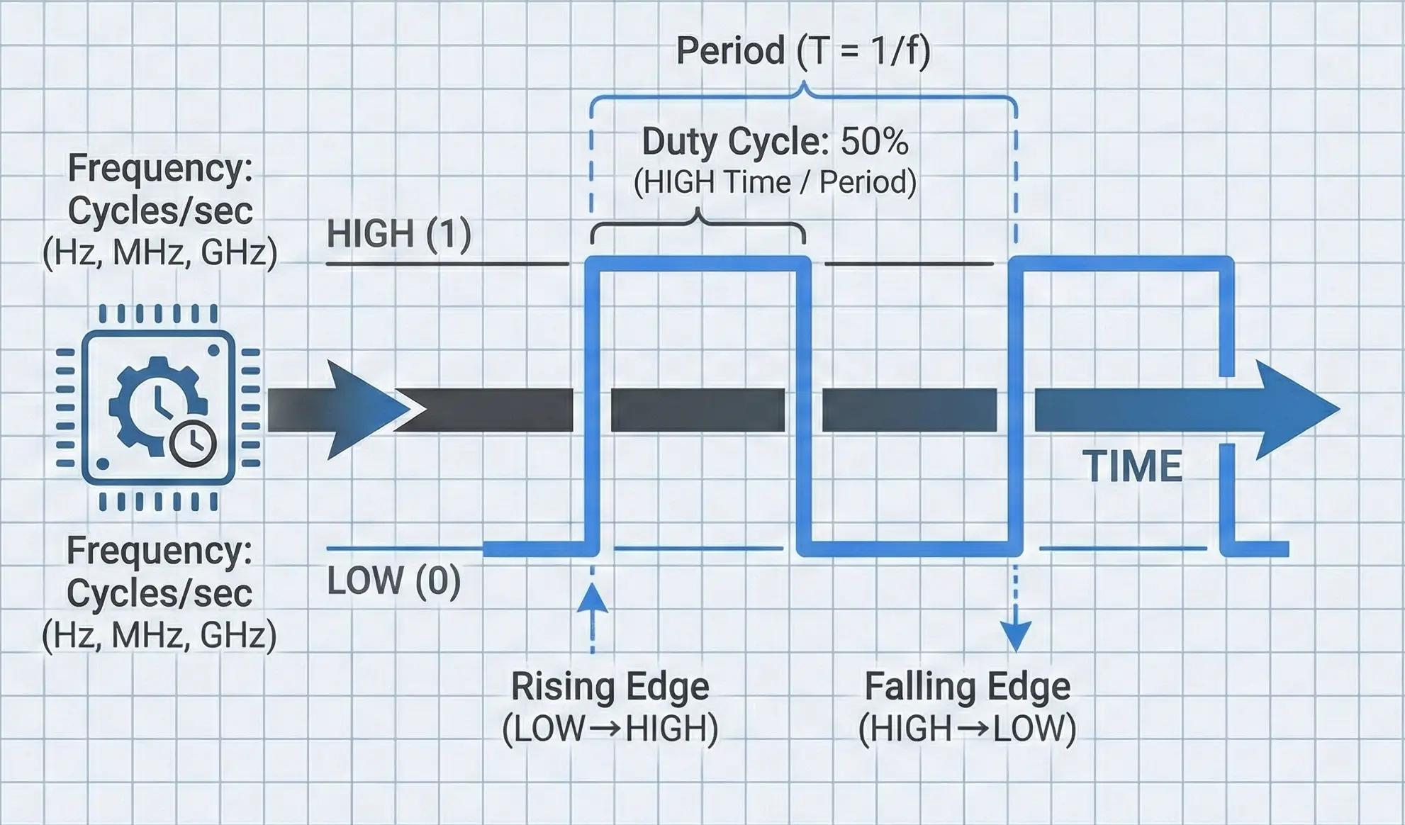 Flip-flops and registers need to know when to capture new data. The clock's edge tells them: "Now! Grab the current input value!" This is what makes memory and state machines possible.